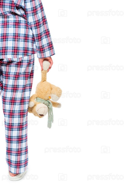 Женщина в пижаме с плюшевым медведем