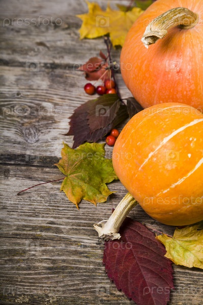 Тыквы и осенние листья