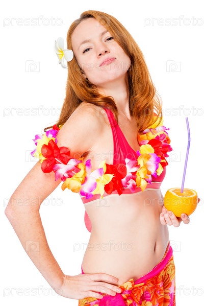 Очаровательная молодая девушка в цветочной гирлянде на белом фоне