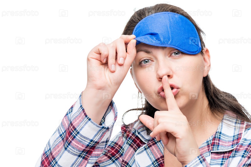 Женщина в пижаме призывает к тишине