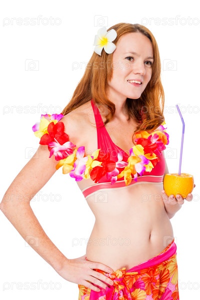 Портрет девушки в бикини с коктейлем