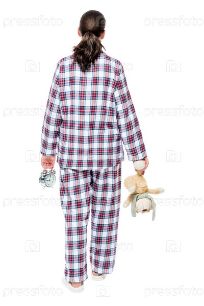 Женщина в клетчатой пижаме ложится спать