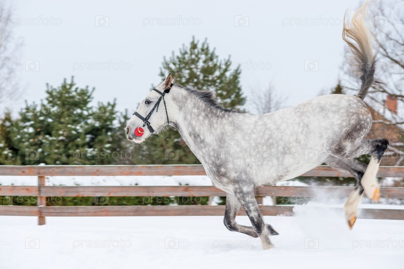 Жеребенок серого цвета на снегу