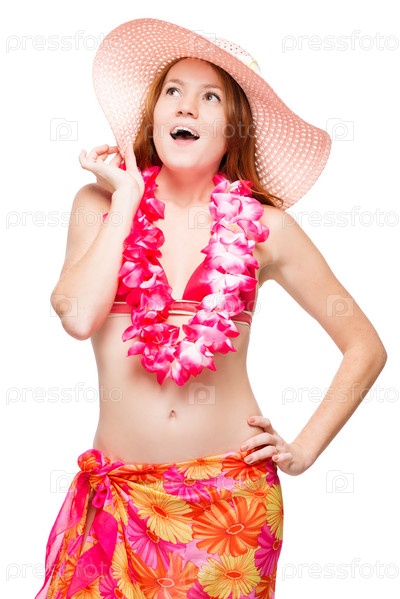Красивая модель в цветочной гирлянде и шляпе