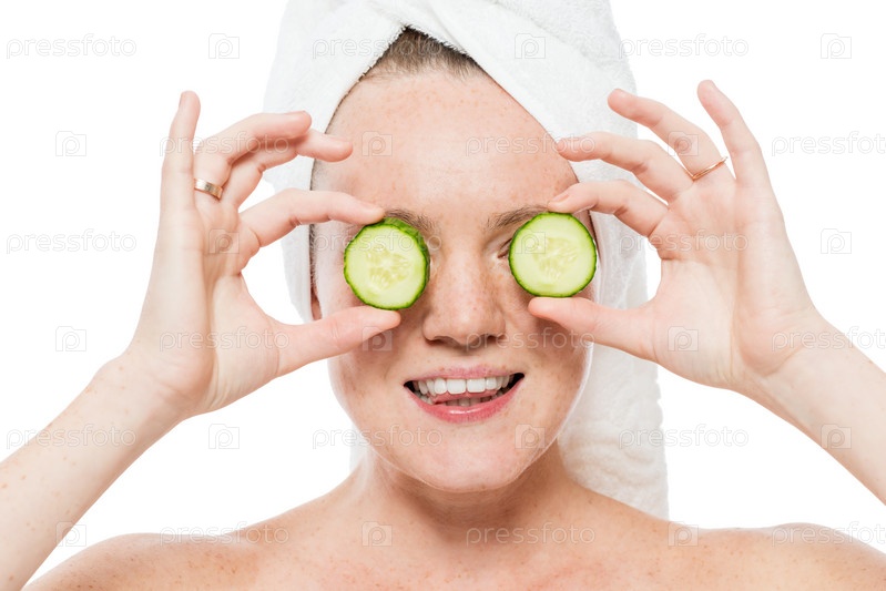 Женский портрет с ломтиками свежего огурца