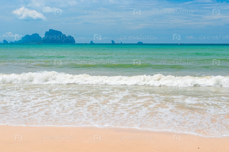 Пенные морская волна и пляж