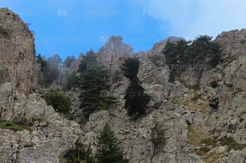 Вершины горы с соснами. Корсика, Франция
