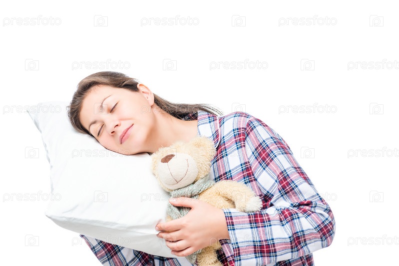 Женский портрет на мягкой подушке на белом фоне