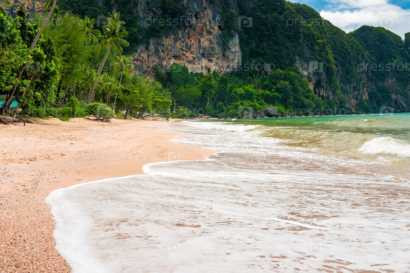 Волны на песчаном пляже Ао Нанг Краби, Таиланд