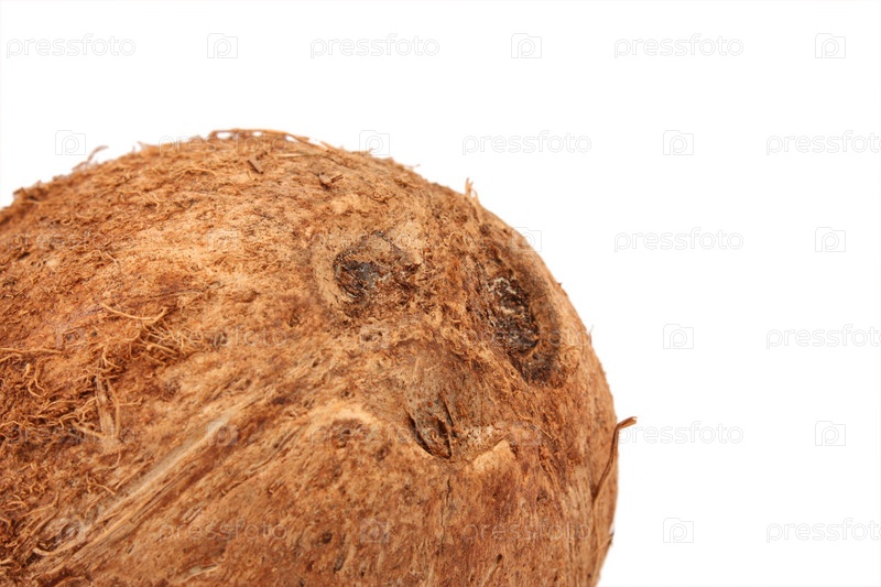 Круглый коричневый кокос на белом фоне