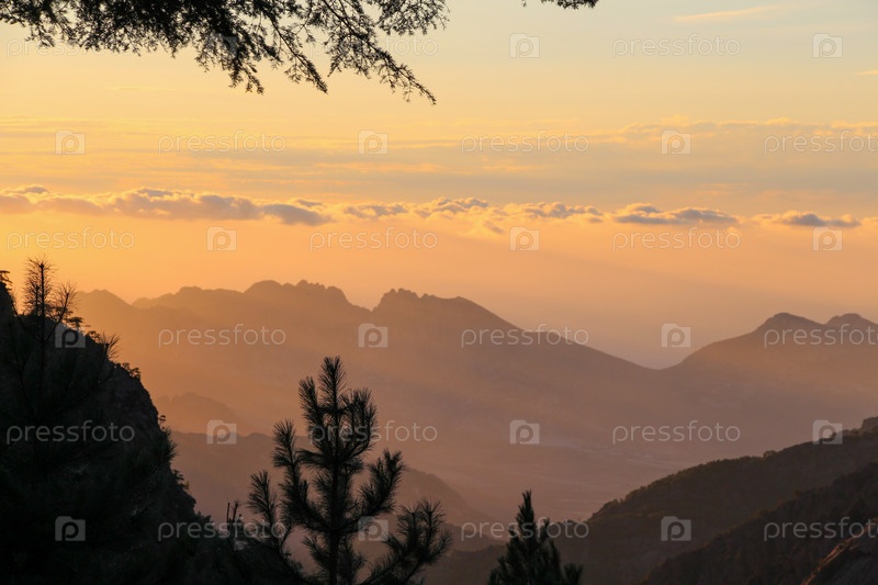 Горный пейзаж на рассвете, Корсика, Франция