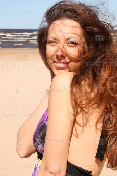 Портрет счастливой красивой девушки на пляже