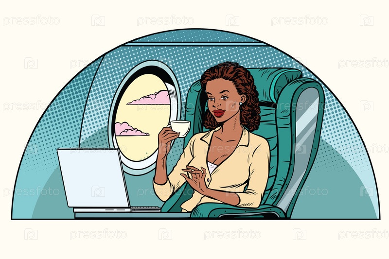 Бизнес-леди, работающая в салоне самолета бизнес-класса