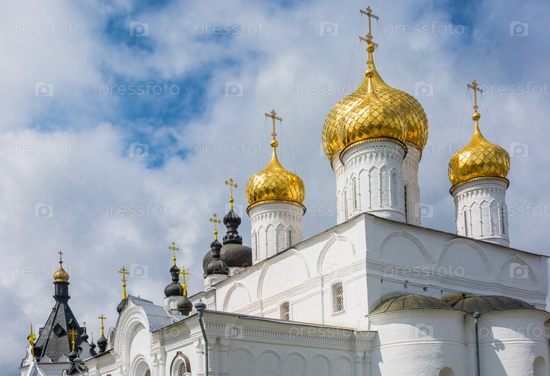 Золотые купола Богоявленского монастыря Св. Анастасии в городе Кострома, Россия