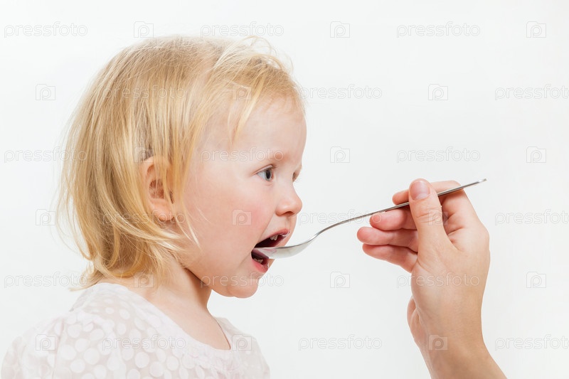 Маленькая девочка ест с ложечки