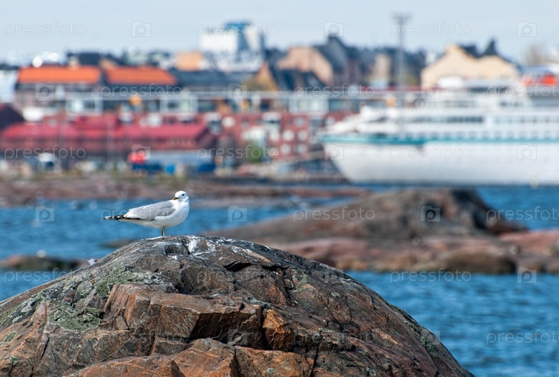Чайка на скале. Побережье Балтийского моря