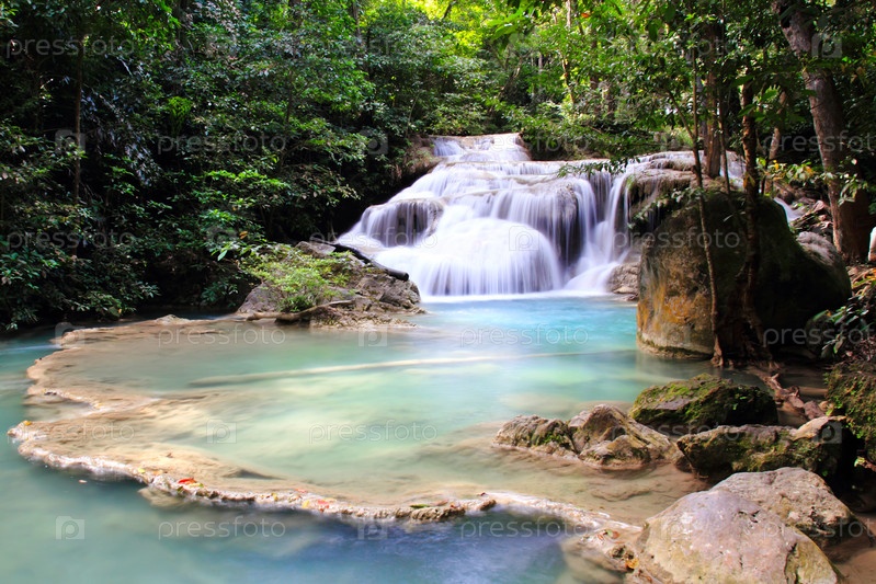 Красивый водопад в национальном парке Эраван в Канчанабури, Таиланд