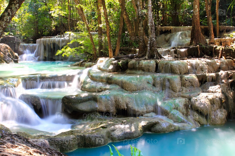 Красивый водопад в национальном парке Эраван в Канчанабури, Таиланд