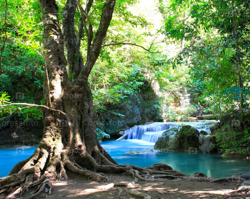 Красивый водопад в национальном парке Эраван в Канчанабури, Таиланд