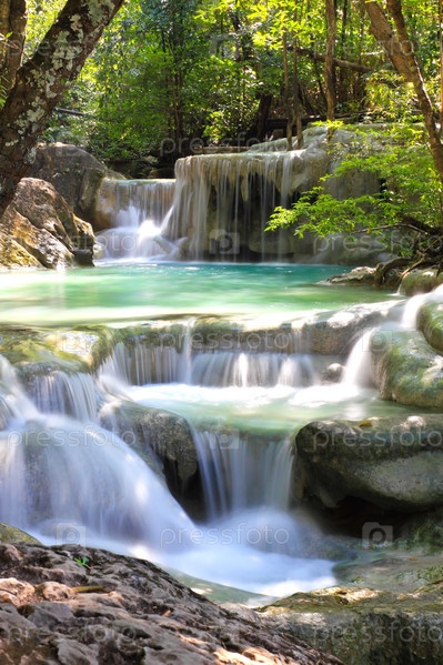Красивый водопад в национальном парке Эраван в Канчанабури, Таиланд