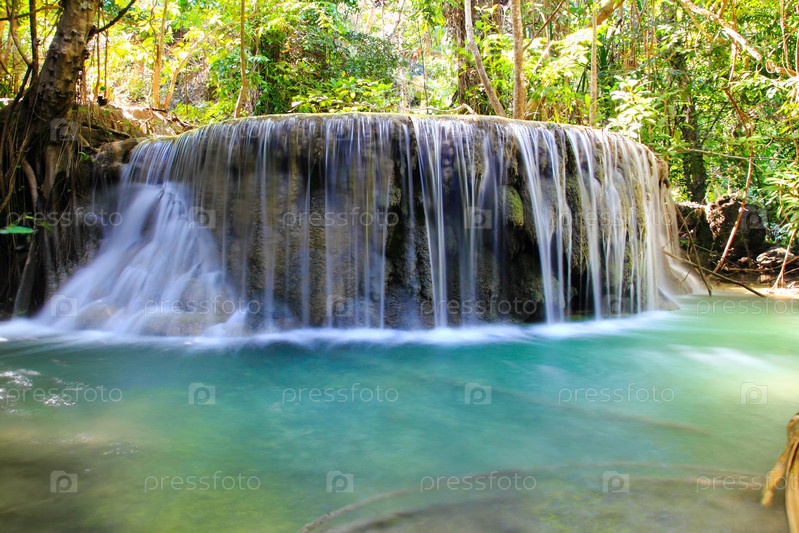 Красивый водопад в национальном парке Эраван в Канчанабури, Таиланд