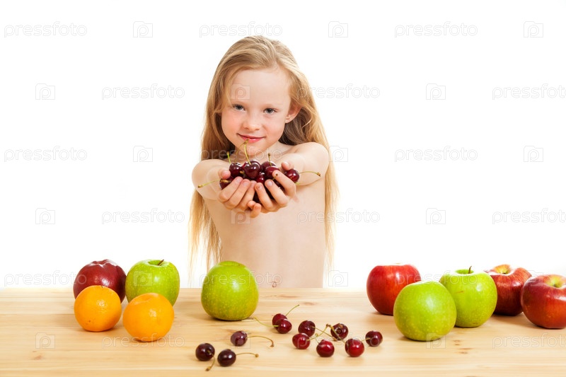Маленькая девочка с фруктами и ягодами