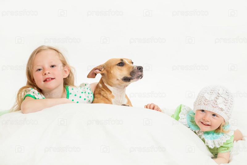 Маленькие девочки с собакой