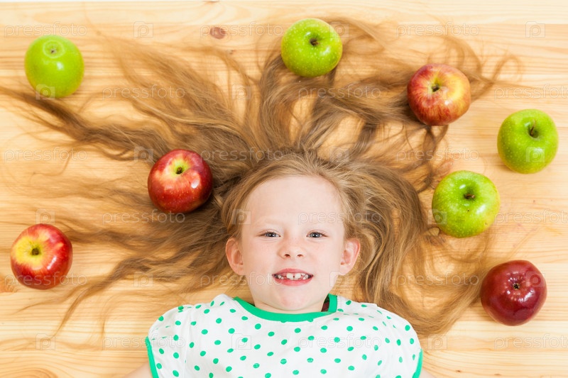 Маленькая девочка среди яблок