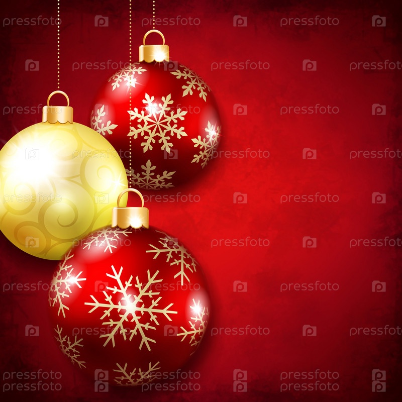 Новогодние шары на красном фоне