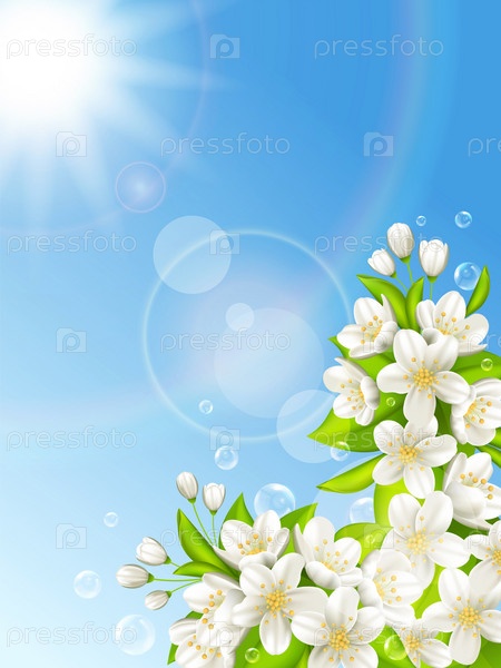 Цветущие вишни на фоне голубого неба