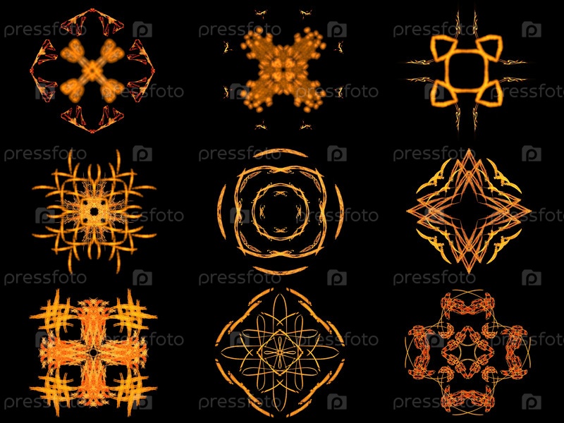 Набо оранжевого фрактального узора на черном фоне
