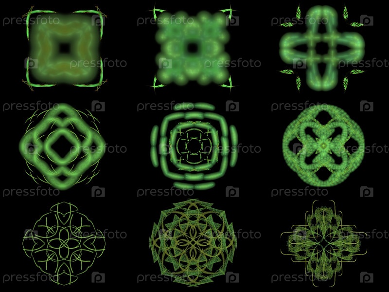 Набор зеленые узоры на черном фоне
