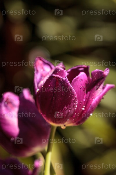 Темно-фиолетовые тюльпаны в саду весной
