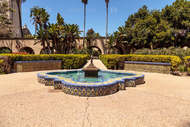 Красивый сад Алькасар в парке Бальбоа в Сан-Диего