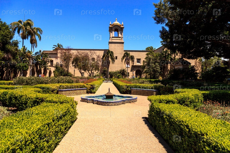 Красивый сад Алькасар в парке Бальбоа в Сан-Диего