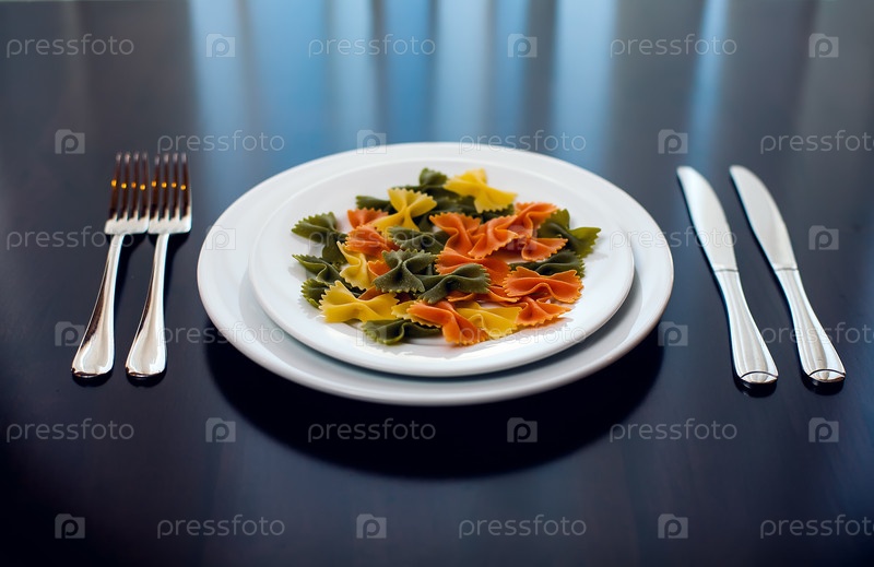 Макароны в форме бантиков на тарелке