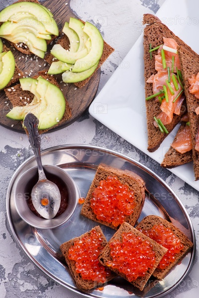 Хлеб с красной лососевой икрой