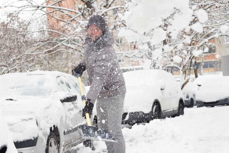 Мужчина убирает снег