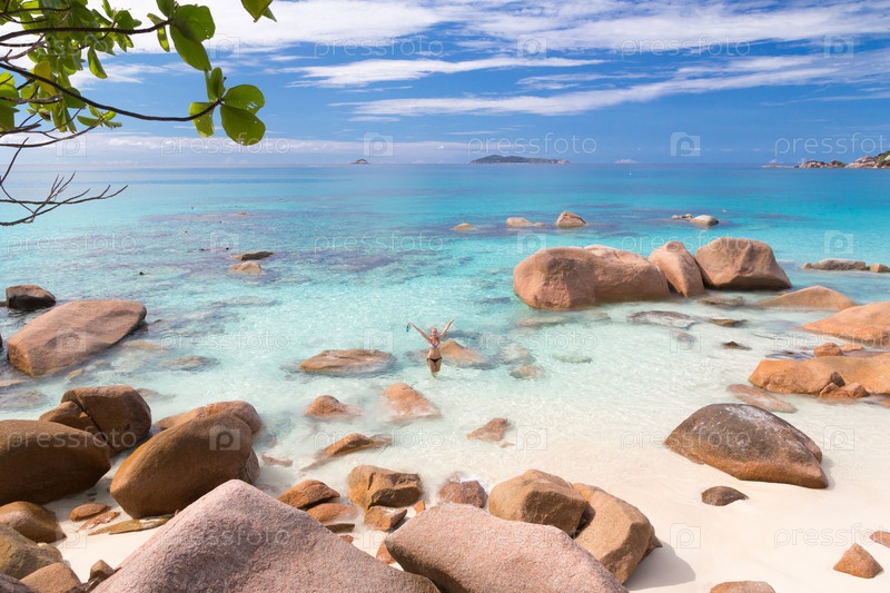 Наслаждаясь пляжем на Острове Праслин, Сейшелы