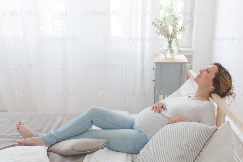 Беременная женщина на кровати
