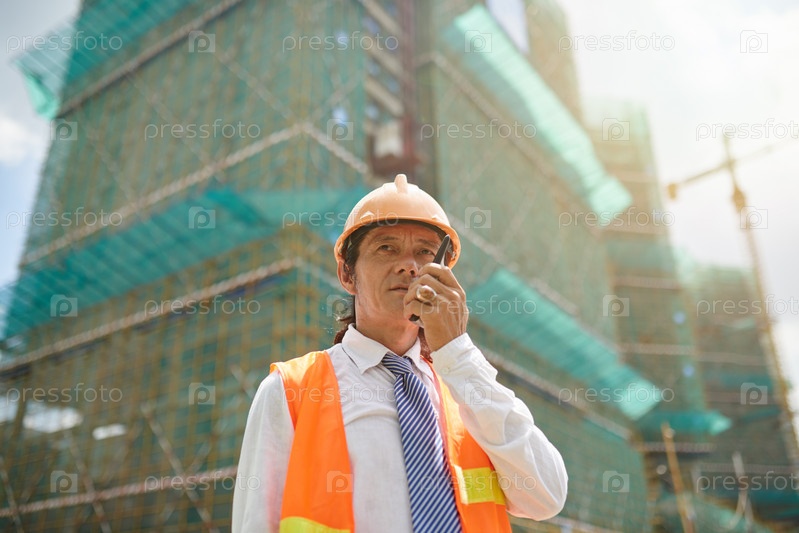 Главный инженер связи с рабочими через рацию