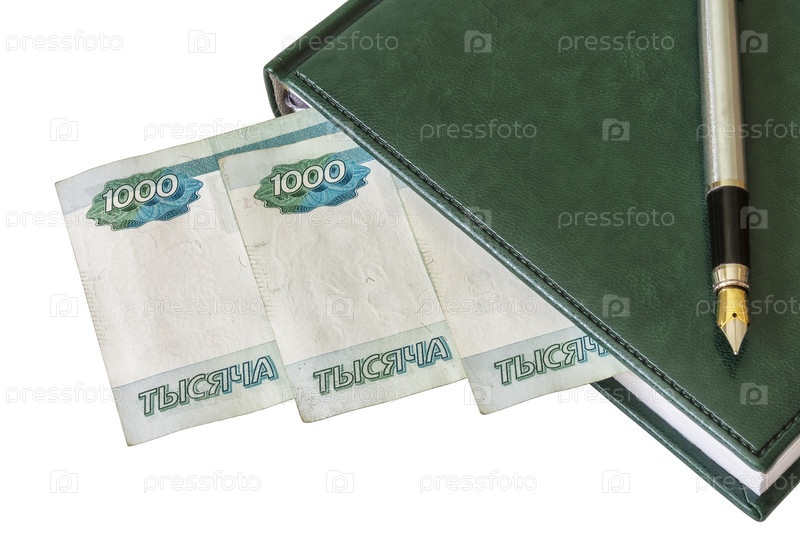 Дневник, авторучка и российские рубли