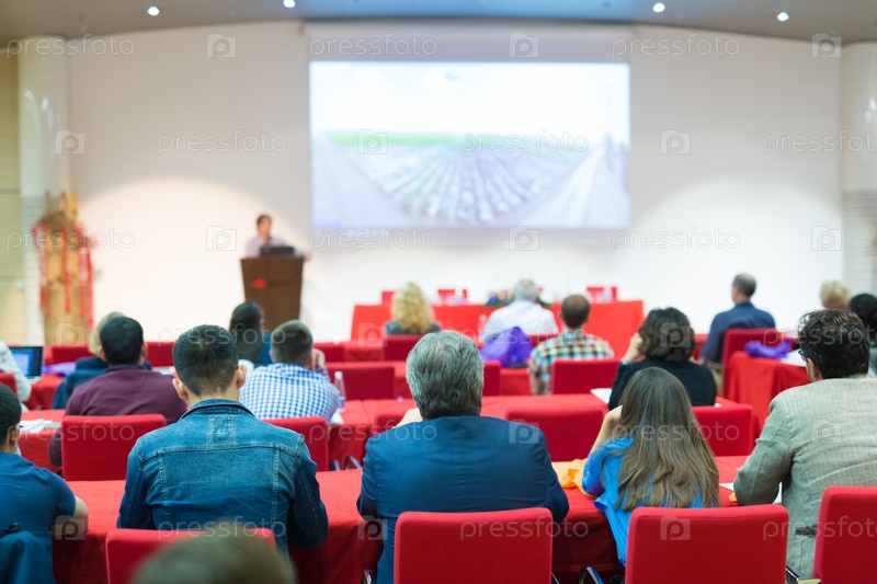 Аудитория в лекционном зале на научной конференции