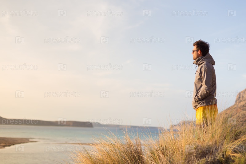 Свободный активный человек, наслаждаясь красотой природы
