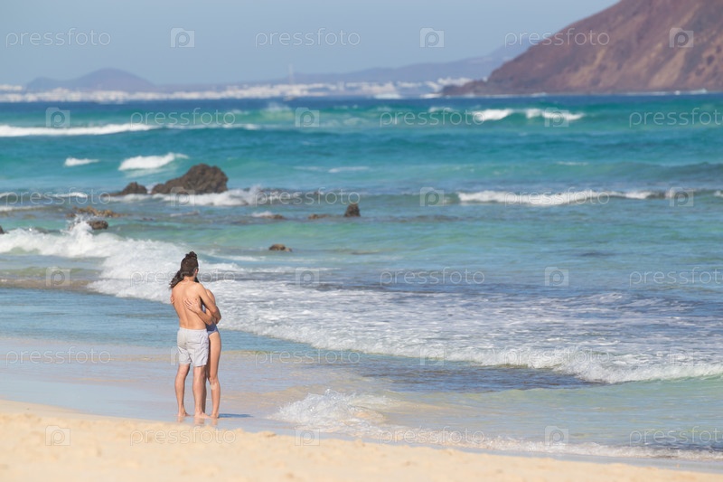 Молодая пара на песчаном пляже