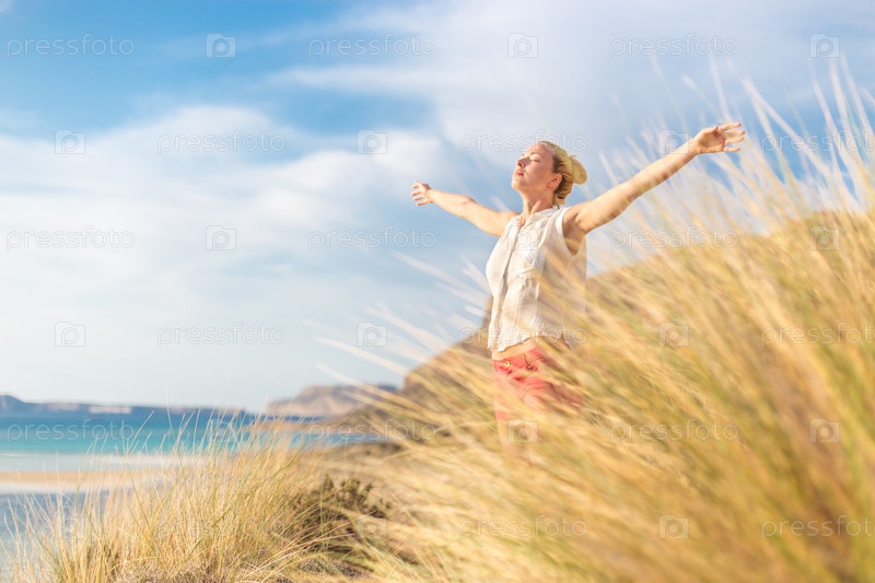 Счастливая женщина, наслаждаясь солнцем