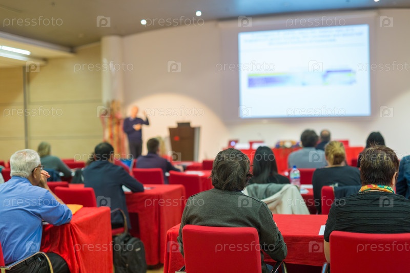 Аудитория в лекционном зале на научной конференции