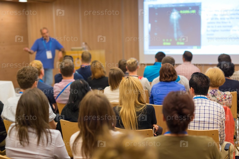 Аудитория в лекционном зале на научной конференции