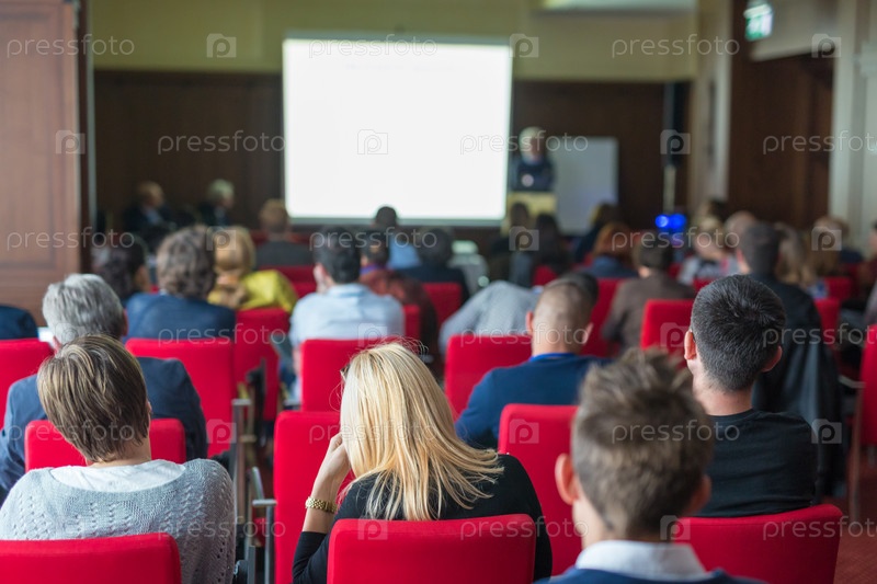 Аудитория в лекционном зале на научной конференции