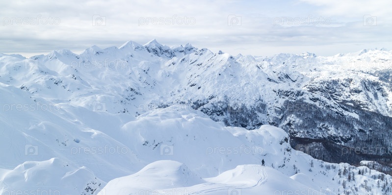 Сноубордист на вершине горы